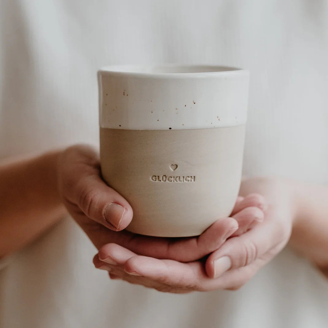 Für Lieblingsmenschen und kleine Glücksmomente.Unsere Steingut-Becher von Eulenschnitt tragen kleine Botschaften mit großer Bedeutung. Für Lieblingsmenschen. Für kleine Pausen mit Gefühl.