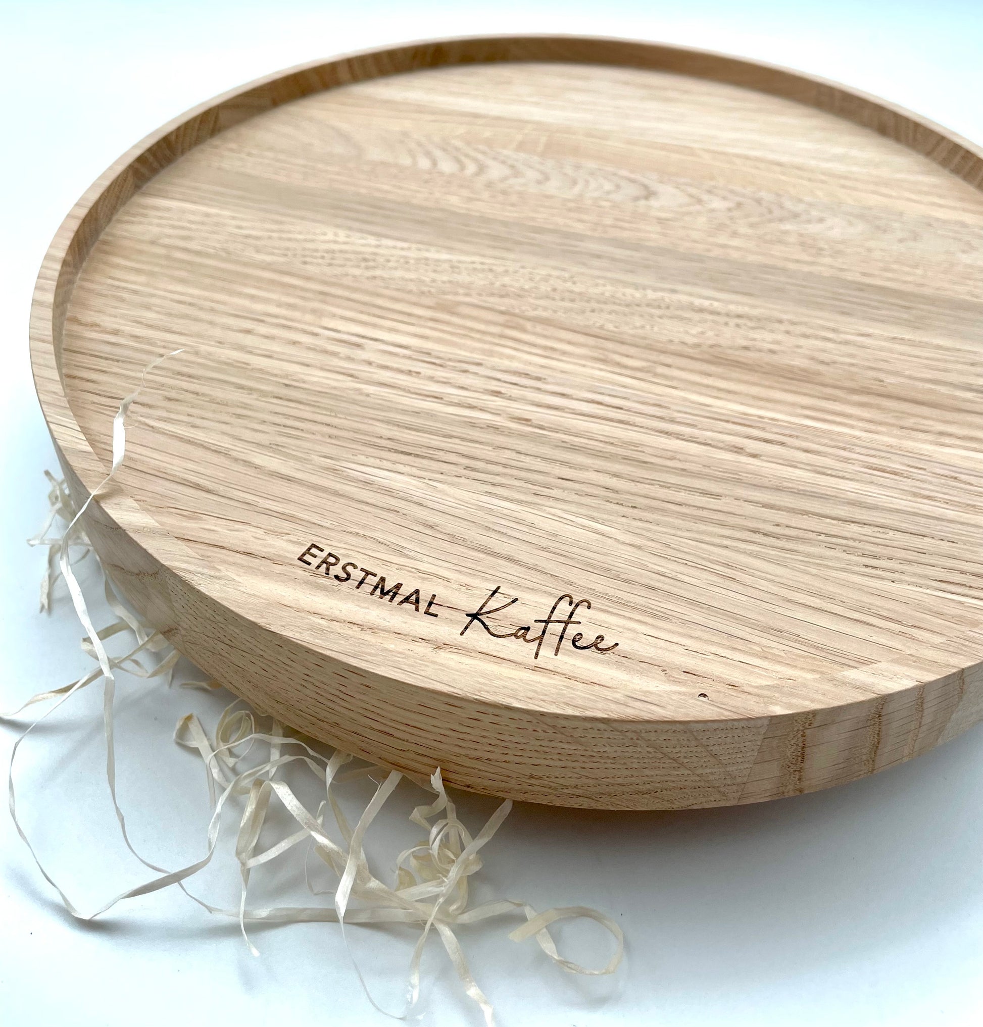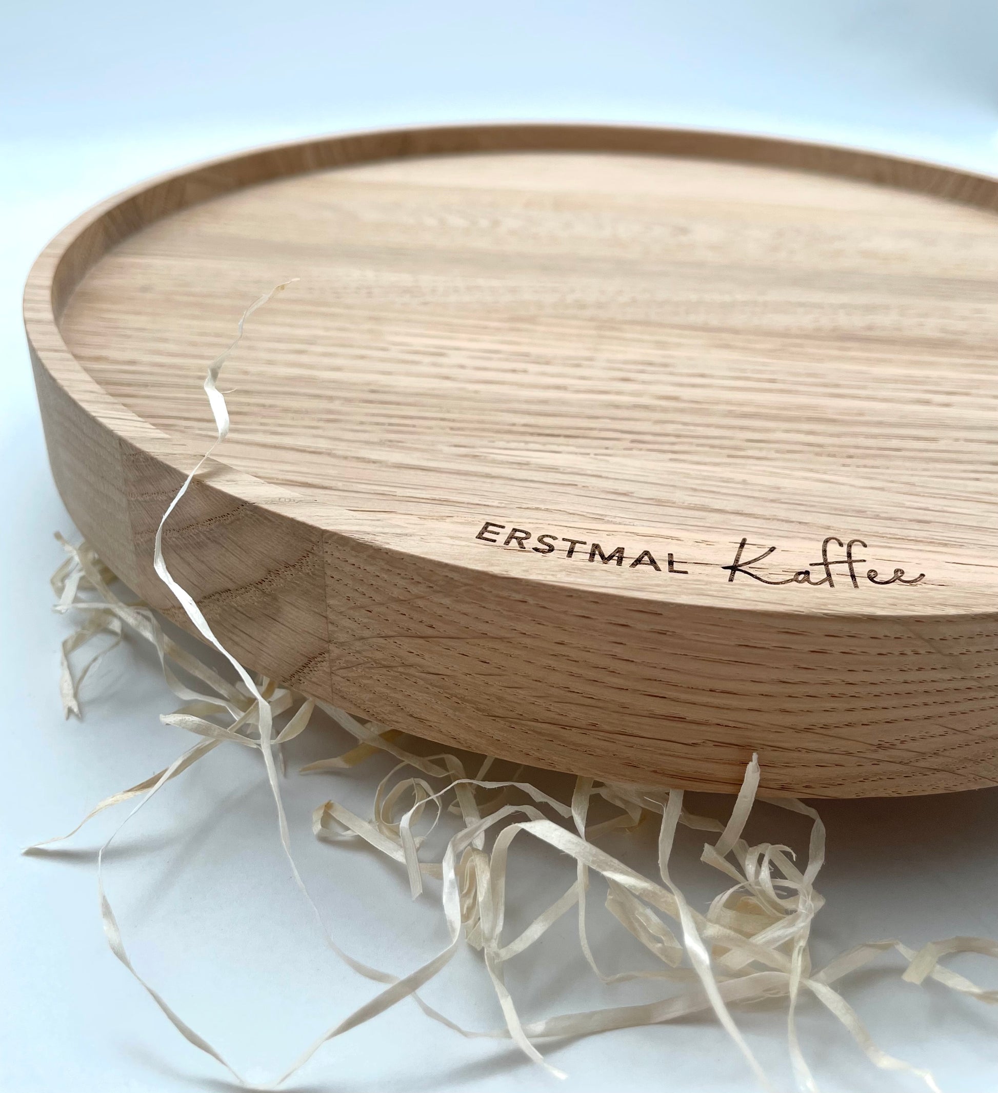 Der Drehteller aus Eiche von Eulenschnitt mit der Aufschrift "Erstmal Kaffee" bringt Bewegung auf deinen Tisch – und das auf schönste Weise. Ob Kuchen, Gewürze oder Frühstücksrituale: Mit seinem natürlichen Look und der samtig geölten Oberfläche wird er zum Lieblingsstück in deiner Küche.
