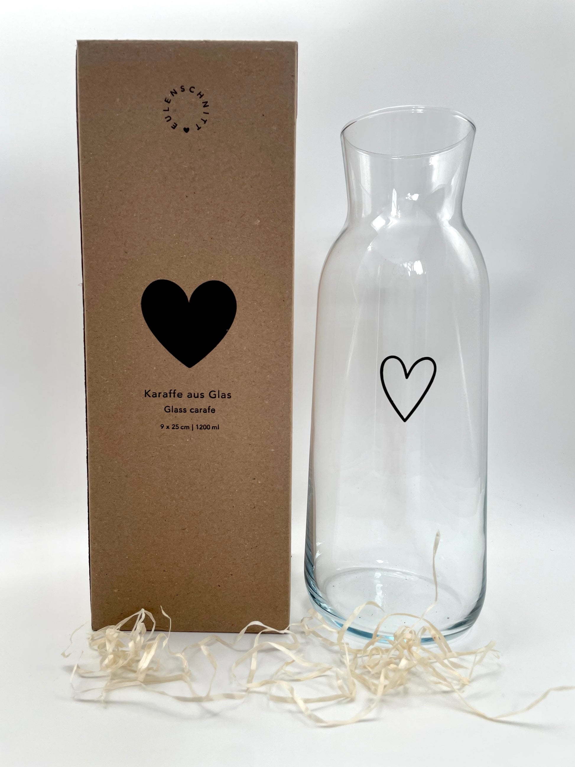 Die Glaskaraffe von Eulenschnitt ist mehr als nur ein schöner Wasserkrug – sie ist ein echter Blickfang mit liebevollem Herz-Design.