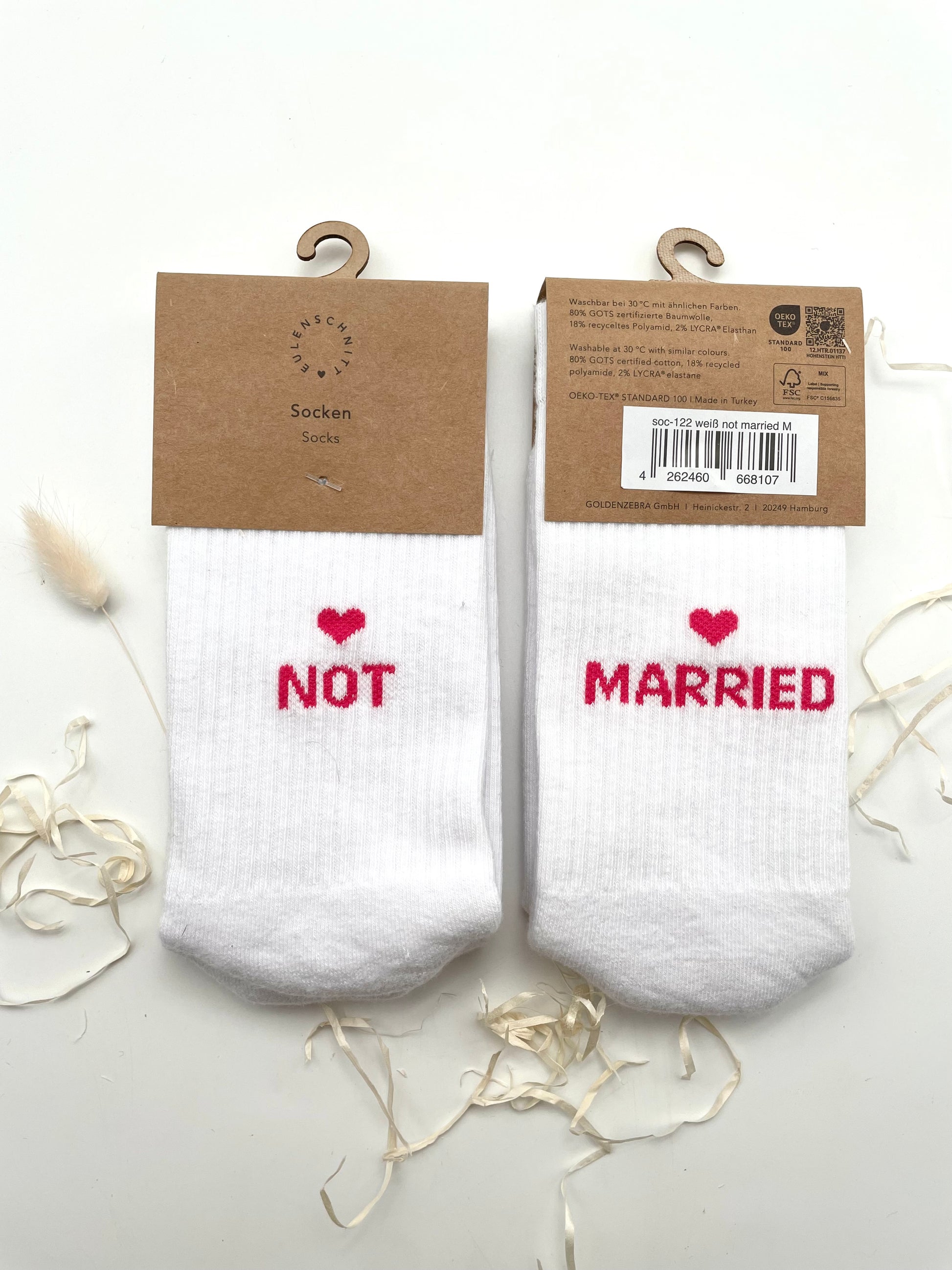 Die Socken „Not Married“ sind gemütlich, klar und ein kleines Statement fürs Leben – mit Humor oder voller Absicht. Schlichtes Design, markanter Schriftzug und ganz viel Gesprächspotenzial. Perfekt zum Verschenken – oder um selbst ein Zeichen zu setzen.