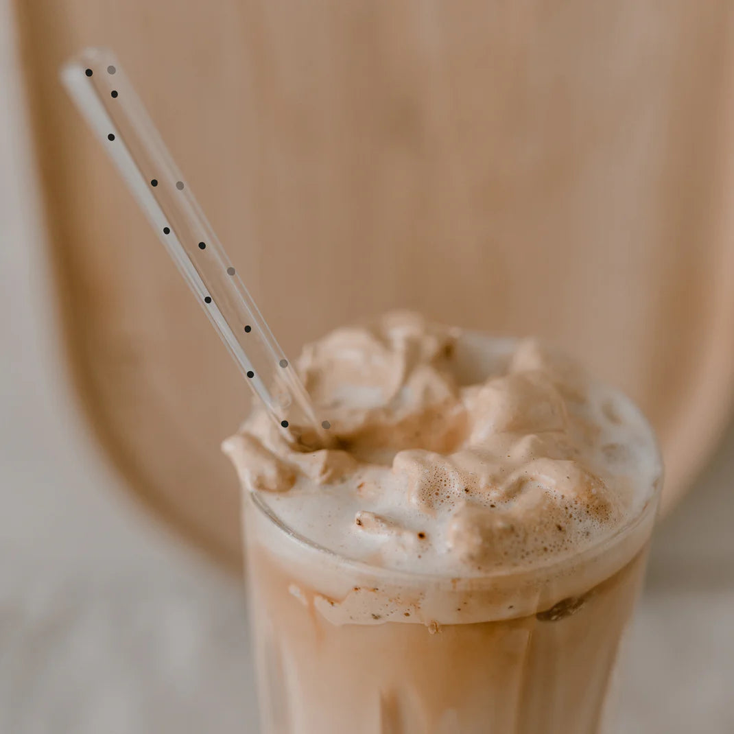 Für schöne Momente – Schluck für Schluck. Die süßen Glasstrohhalme mit kleinen schwarzen Punkten machen jedes Getränk ein bisschen besonderer. Wiederverwendbar, spülmaschinengeeignet und inkl. Bürstchen – nachhaltig, praktisch & einfach schön.