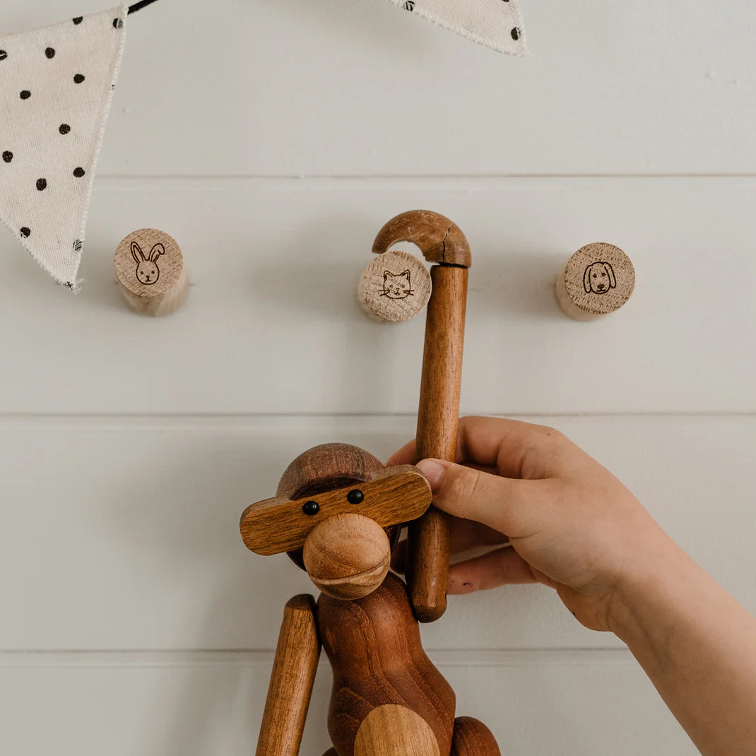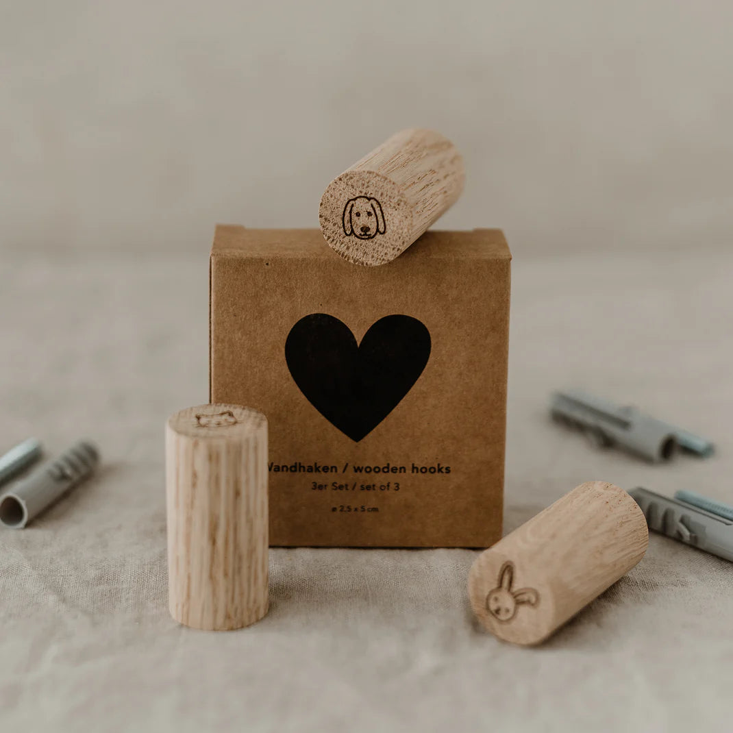 Tierisch süß & einfach zum Verlieben. Die Eichenholz-Wandhaken Tiere bringen Wärme und Freude in jedes Kinderzimmer. Schlicht, natürlich & mit viel Herz graviert. Das Set besteht aus drei 3 Haken inkl. Dübel, Schrauben & Anleitung.