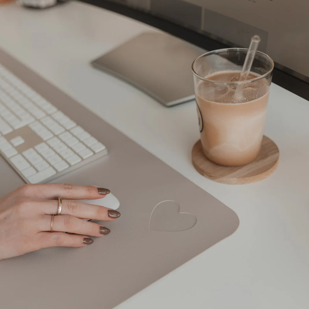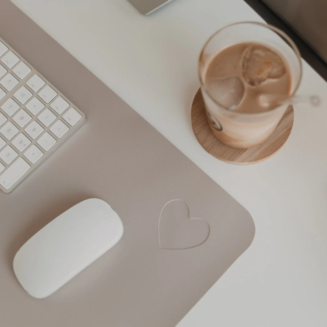 Ein Herz für deinen Schreibtisch. Die Schreibtischunterlage Herz in zartem Beige bringt Ruhe, Ordnung und einen Hauch Wärme auf deinen Tisch. Gefertigt aus hochwertigem Lederimitat, schützt sie zuverlässig vor Kratzern und Flecken – und sieht dabei einfach schön aus. Die kleine Herzprägung erinnert dich im Alltag an das, was wirklich zählt.
